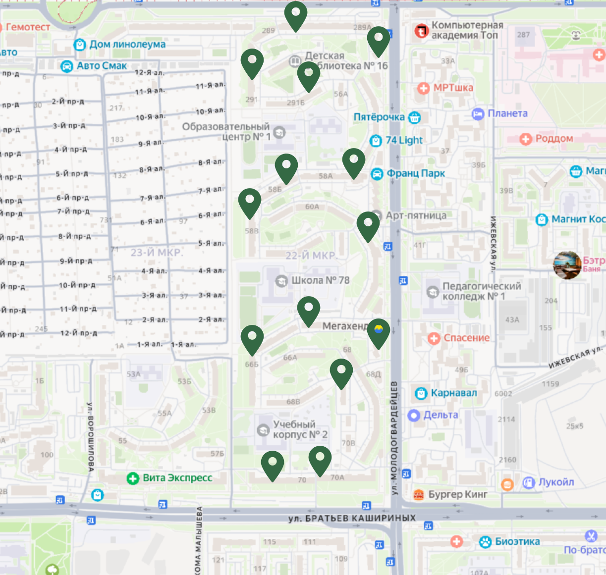 Вы выбираете, в каких домах или бизнес-центрах будет размещена реклама. Это значит — вы показываете объявление именно тем, кто живёт или работает рядом с вами.